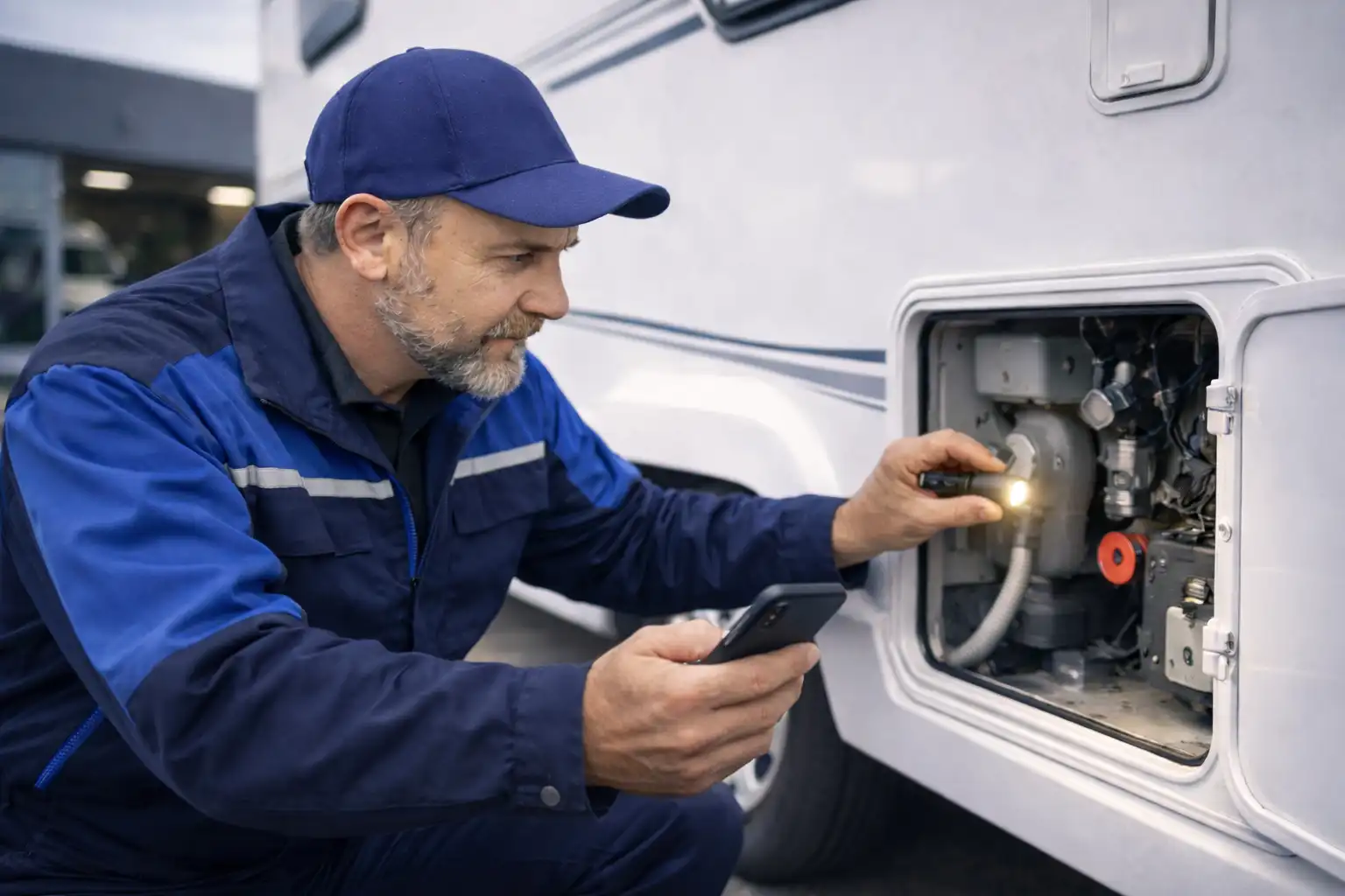 Käytössä voi olla mm. kosteusmittari (myös piikit), endoskooppi, akkujen rasitustesteri, yleismittari ja pihtivirtamittari. Lisäksi tarvittaessa kaasujärjestelmän koeponnistuslaite, 230V-kulutusmittari ja lämpökamera.